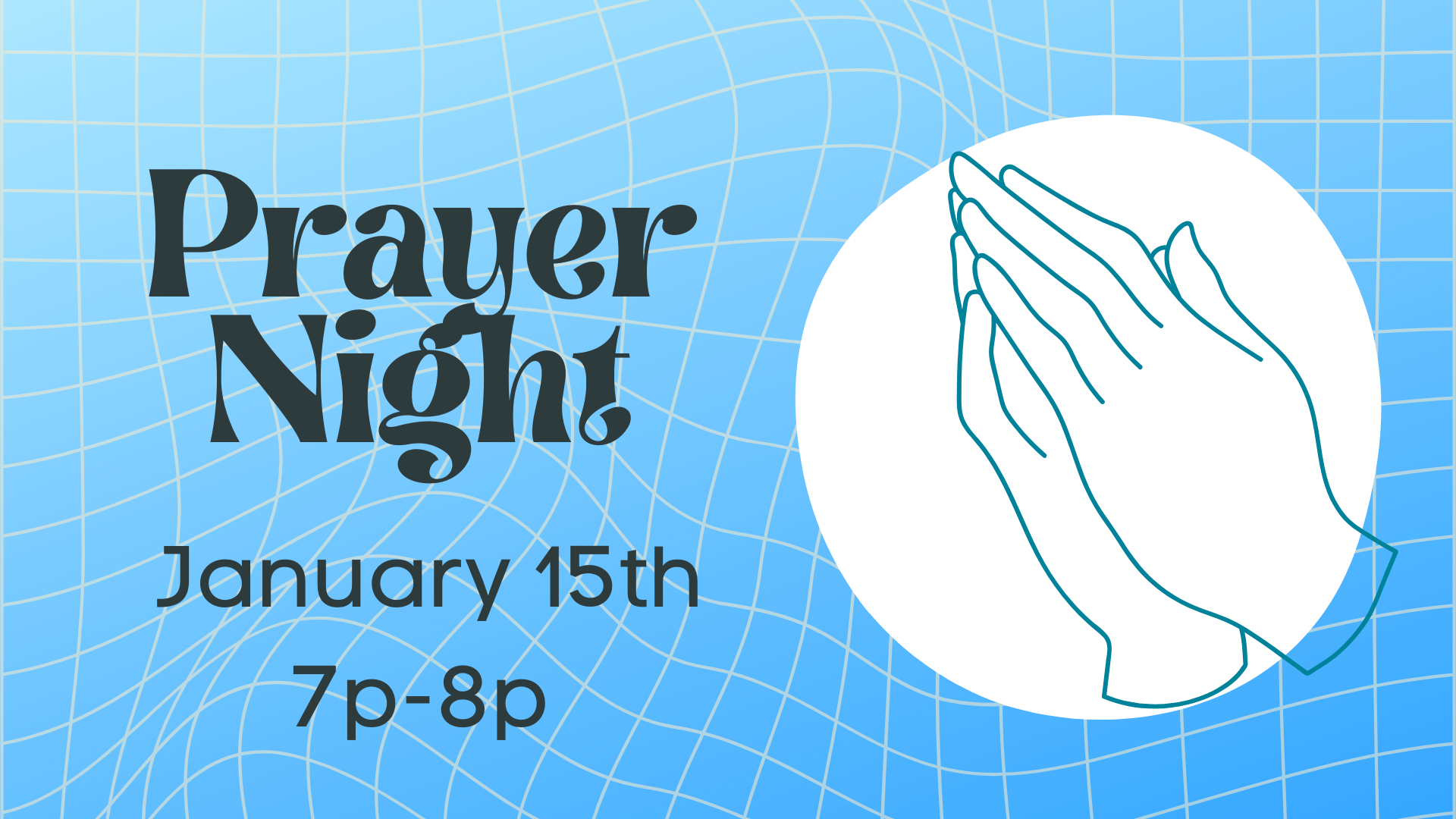 If you have a thriving prayer life or would like one, we will be at the church January 15th from 7-8pm. (You will not have to pray out loud)